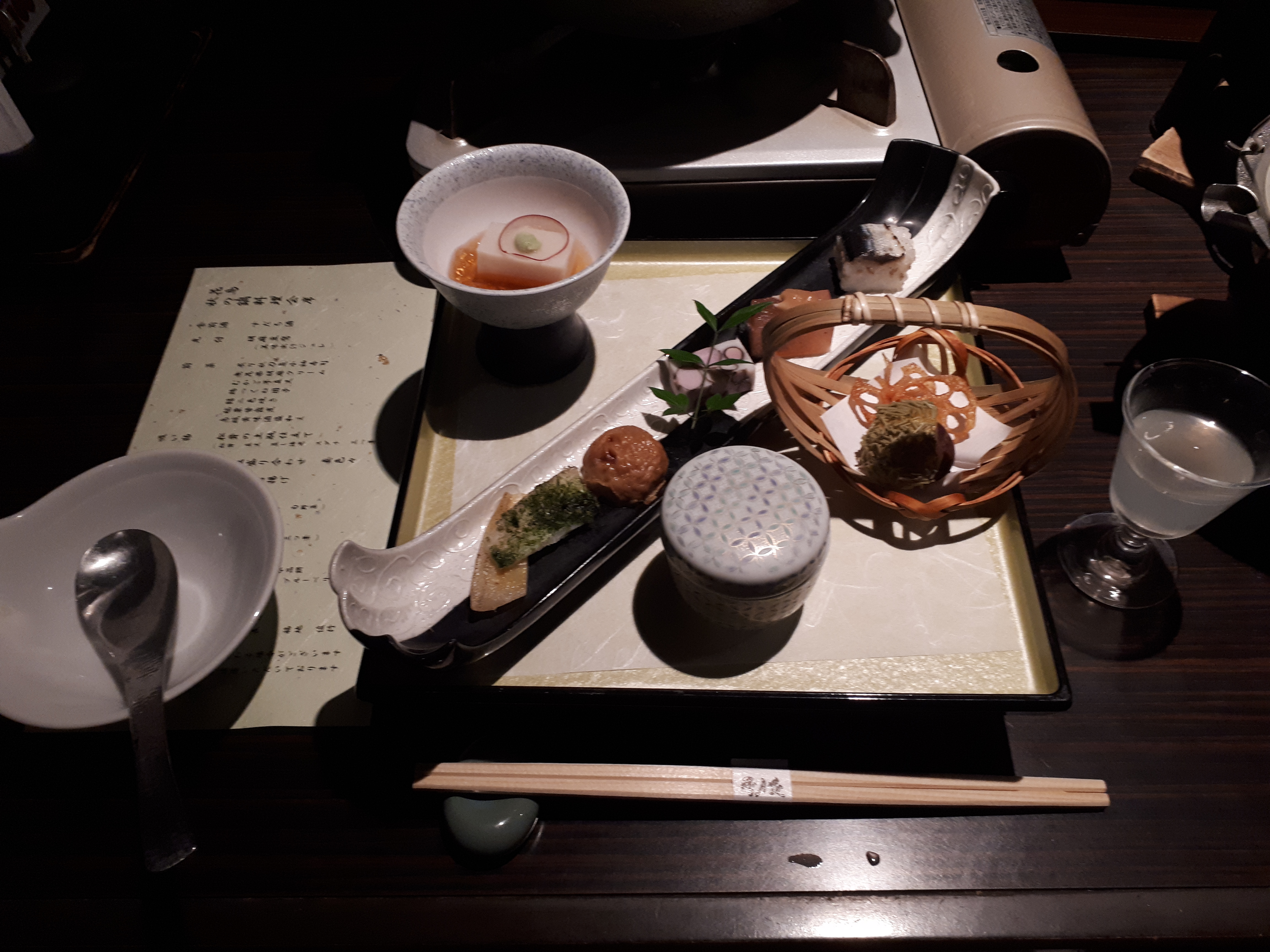 I hadn’t ordered this! But apparently, this restaurant’s classiness prohibited its guests from merely ordering anything. The mysterious paper lying nearby, its script illegible to me, seemed more like a prescription than a menu, outlining several courses of treatment—I mean, deliciousness—which I had little choice but to follow.